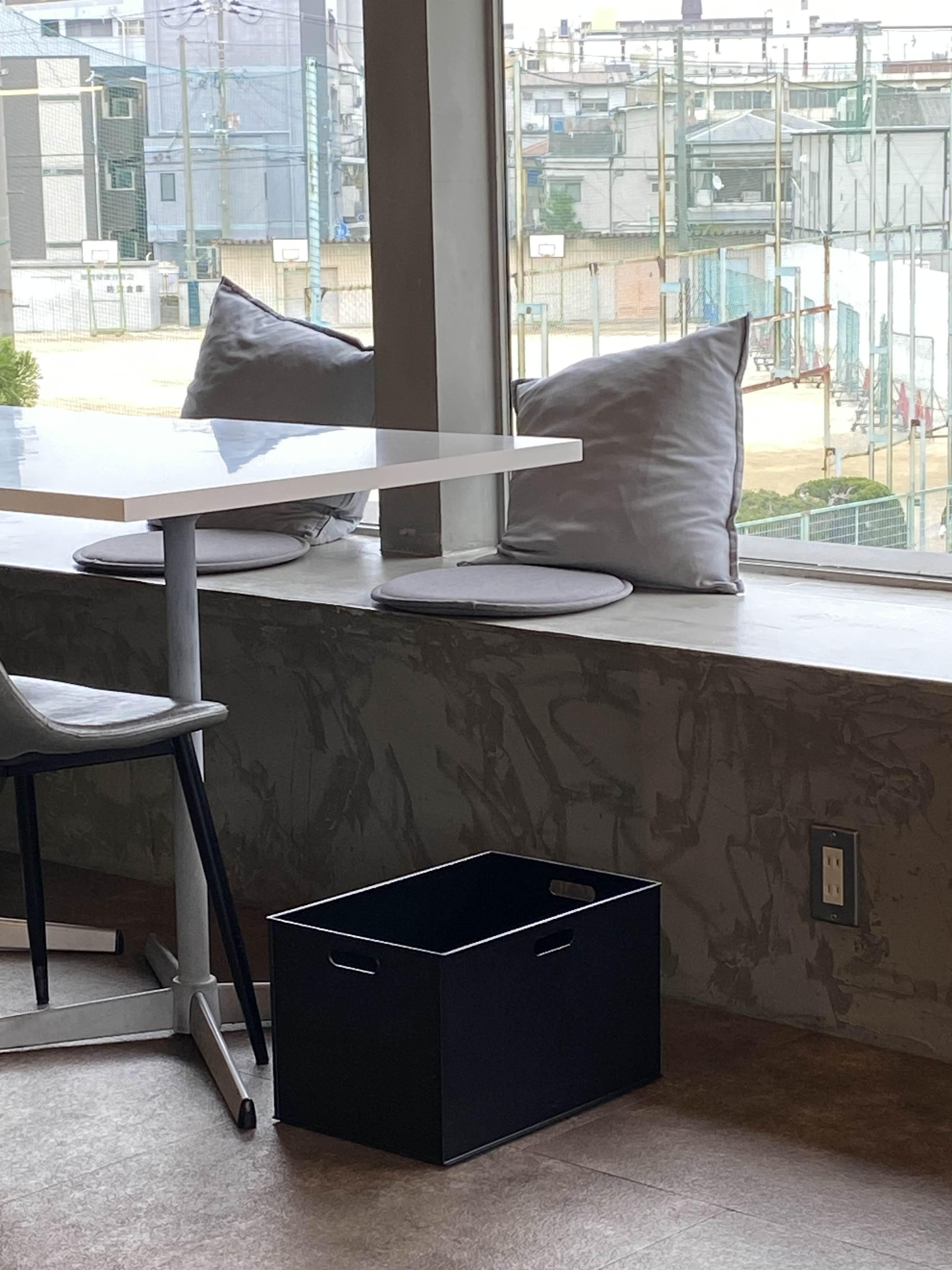 일본은 카페에 콘센트가 많이 없는데 이곳은 자리마다 콘센트가 있어 편하게 충전이 가능했고 가방 수납 바구니도 따로 준비되어 있어 편하게 앉아 있을 수 있었어요.