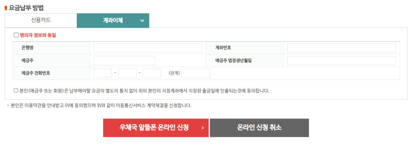 요금 납부의 경우 본인 명의의 신용카드가 있으시다면 문제없지만