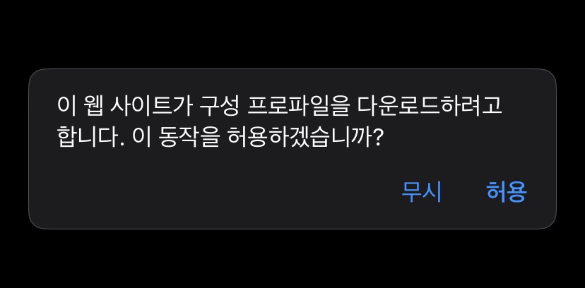 갤럭시의 경우 이런 과정이 필요 없었건 것으로 기억하는데 아이폰의 경우 수동으로 프로파일을 설치하는 과정이 꼭 필요했어요. 만약 갤럭시임에도 APN 관련 문제가 생긴다면 수동으로 프로파일을 설치해주셔야 합니다.