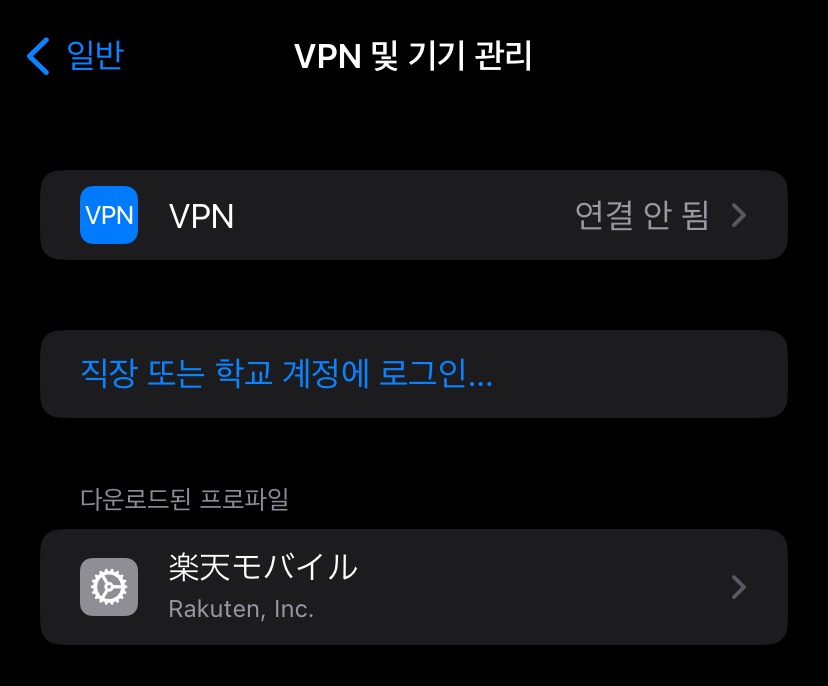 사이트에서 먼저 파일을 다운로드하여야만 화면에 楽天モバイル라고 프로파일이 화면에 뜹니다.