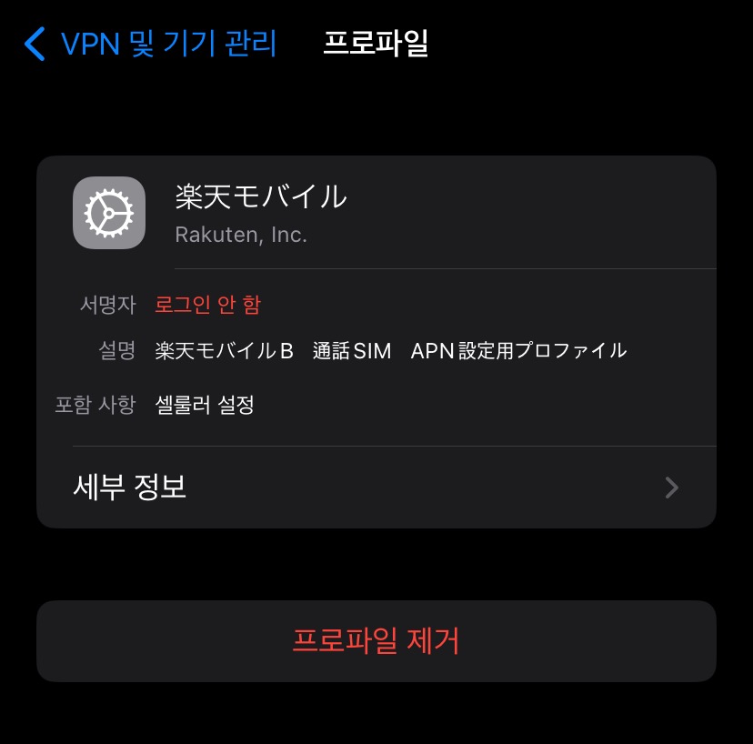 iPhone 라쿠텐 유심 프로파일 설치